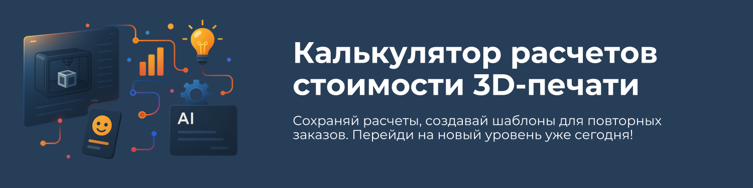 Рассчитывай себестоимость 3D печати, сохраняй расчеты и оптимизируй свои затраты.